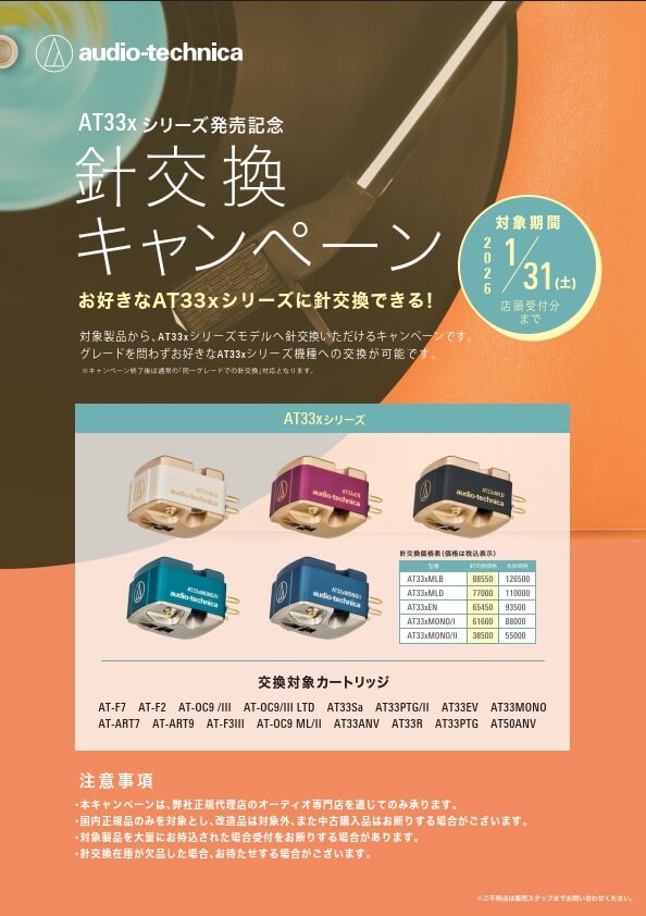 audio-technica AT33xシリーズ発売記念【針交換キャンペーン】