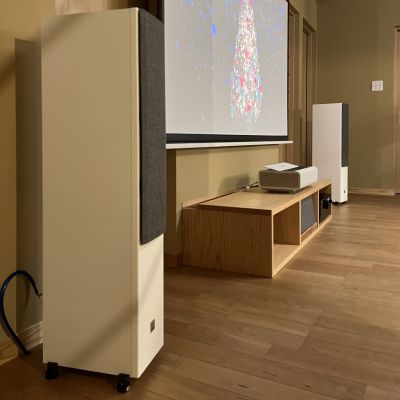 プロジェクターは手持ちの物を移設、使用したいと言うお話とサラウンドシステムをどのようにしたら出来るか?とご相談頂きご予算と合わせて7Chのシステムをご提案しました。