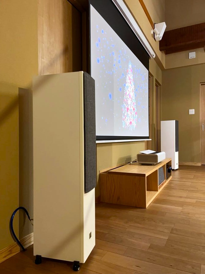 無事セットアップが完了しスクリーンに映像を映して頂きサラウンドシステムから流れる音楽にご家族皆さんで喜んで頂きました。