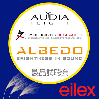 アイレックスの取り扱うALBEDO(アルベド)、AUDIA(オーディア)、Synergistic Research(シナジースティックリサーチ)の製品試聴会を開催します。